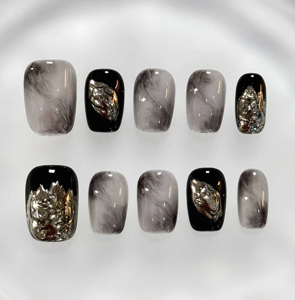 Everyday Cute - Black and Gray Marble - Customizable Handcrafted Press On Nails