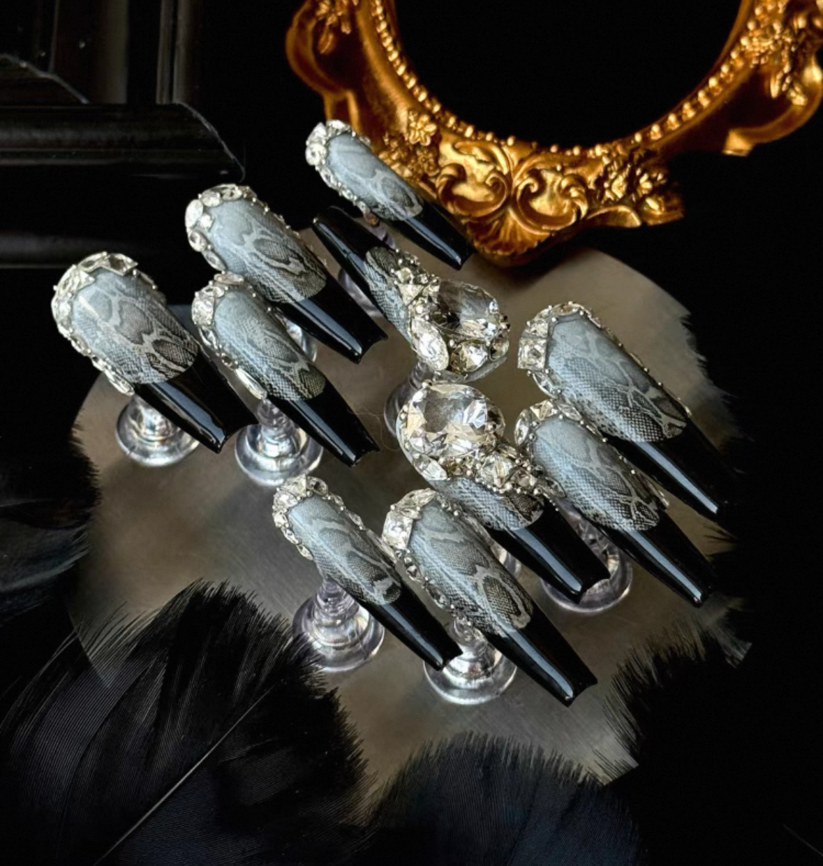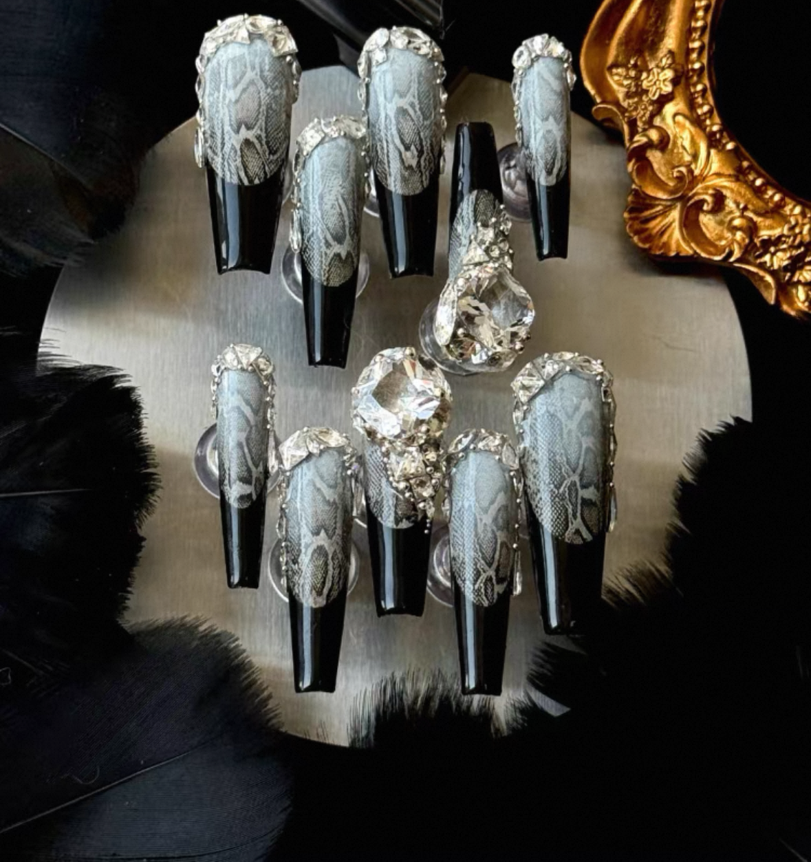 Charme Atelier - Black and Grey Snake Print - Customizable Handcrafted Press On Nails