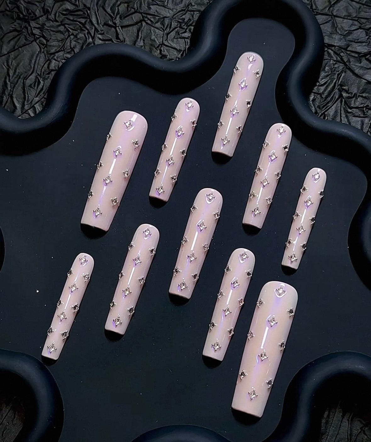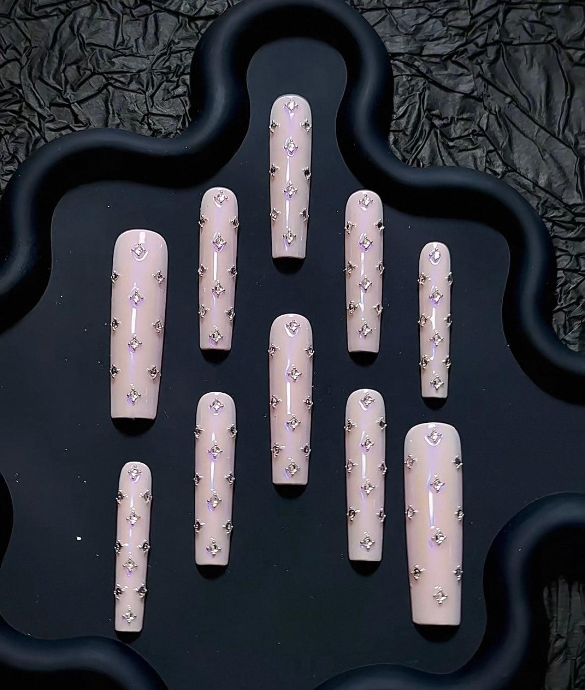 Daily Chic - Blush Pink with Crystal Accents - Customizable Handcrafted Press On Nails