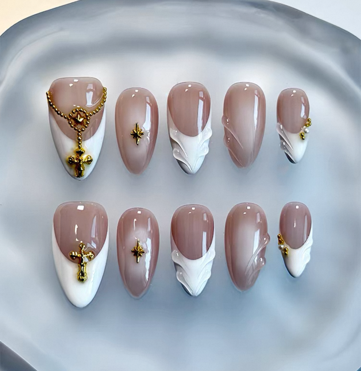 Everyday Cute - Blush & White Elegance - Customizable Handcrafted Press On Nails
