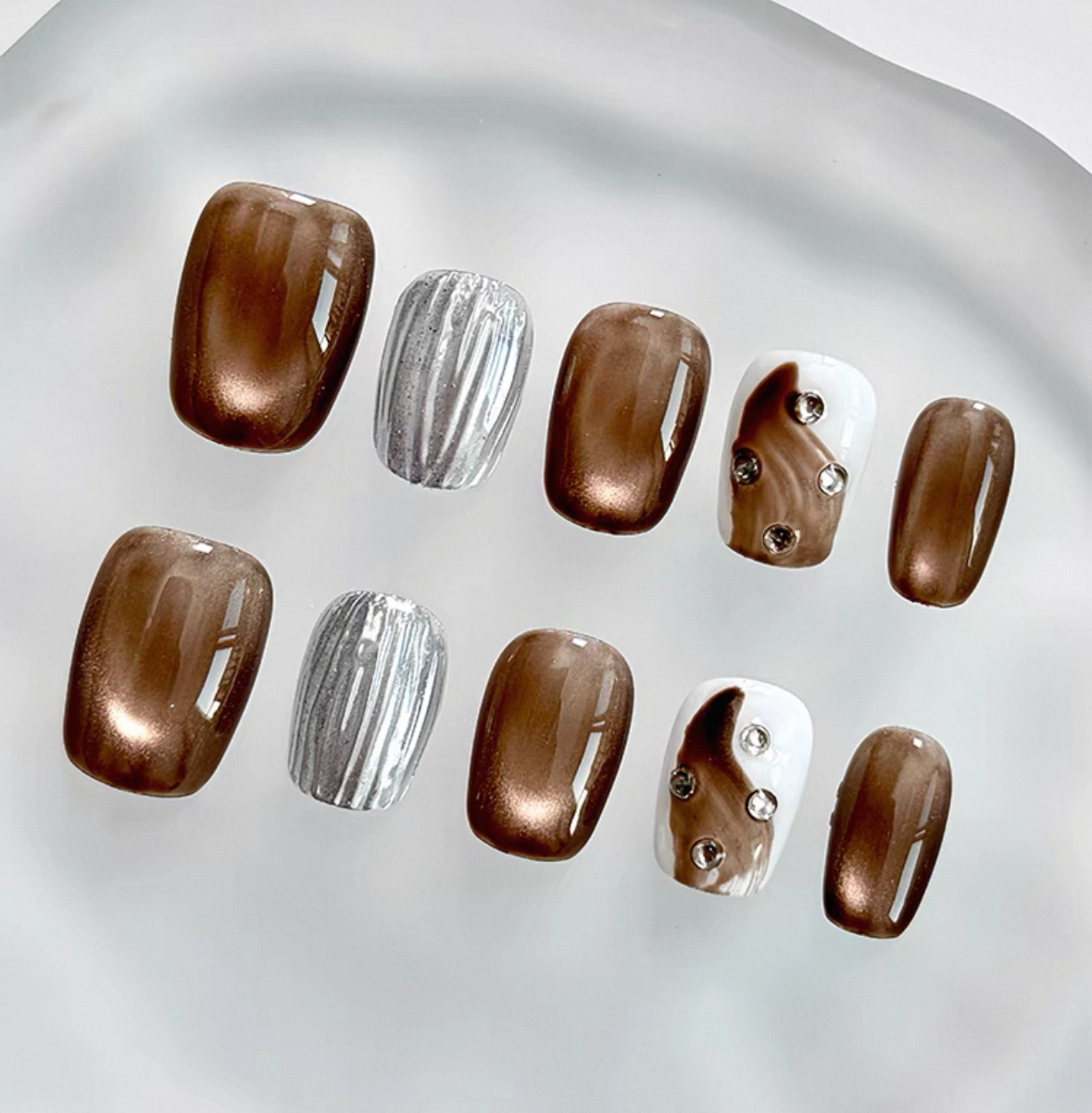 Everyday Cute - Chocolate Brown and Silver - Customizable Handcrafted Press On Nails