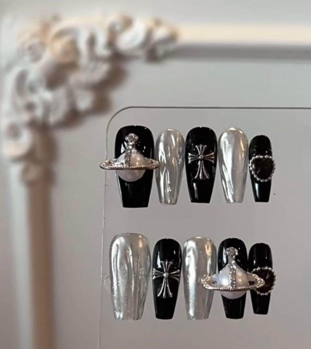 Daily Chic - Black & Silver - Customizable Handcrafted Press On Nails