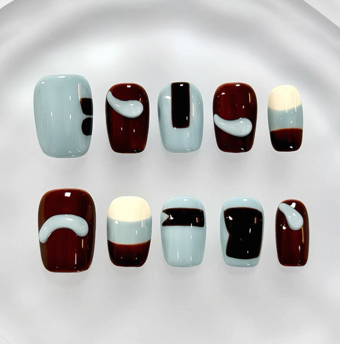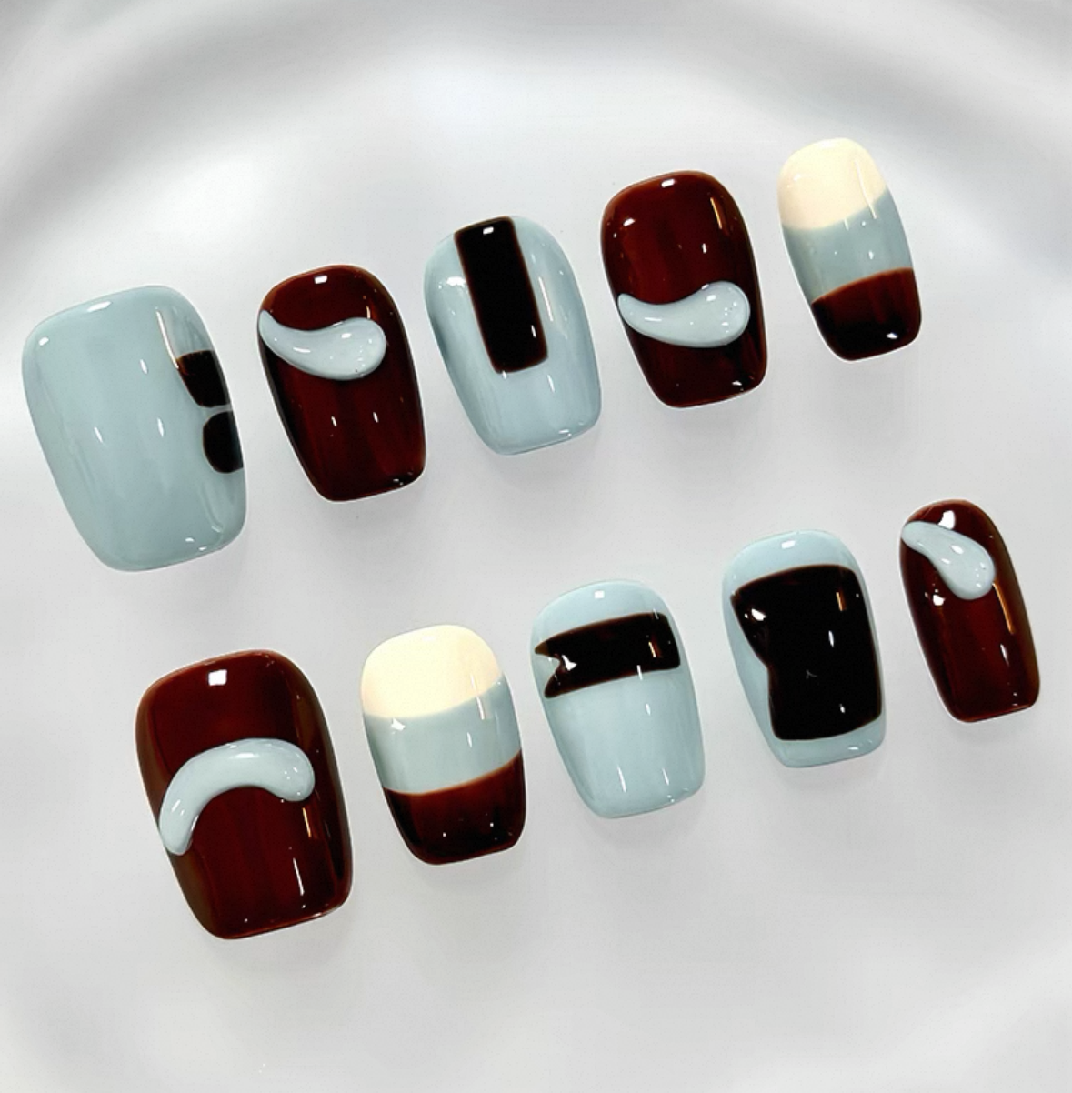 Everyday Cute - Deep Red and Sky Blue - Customizable Handcrafted Press On Nails