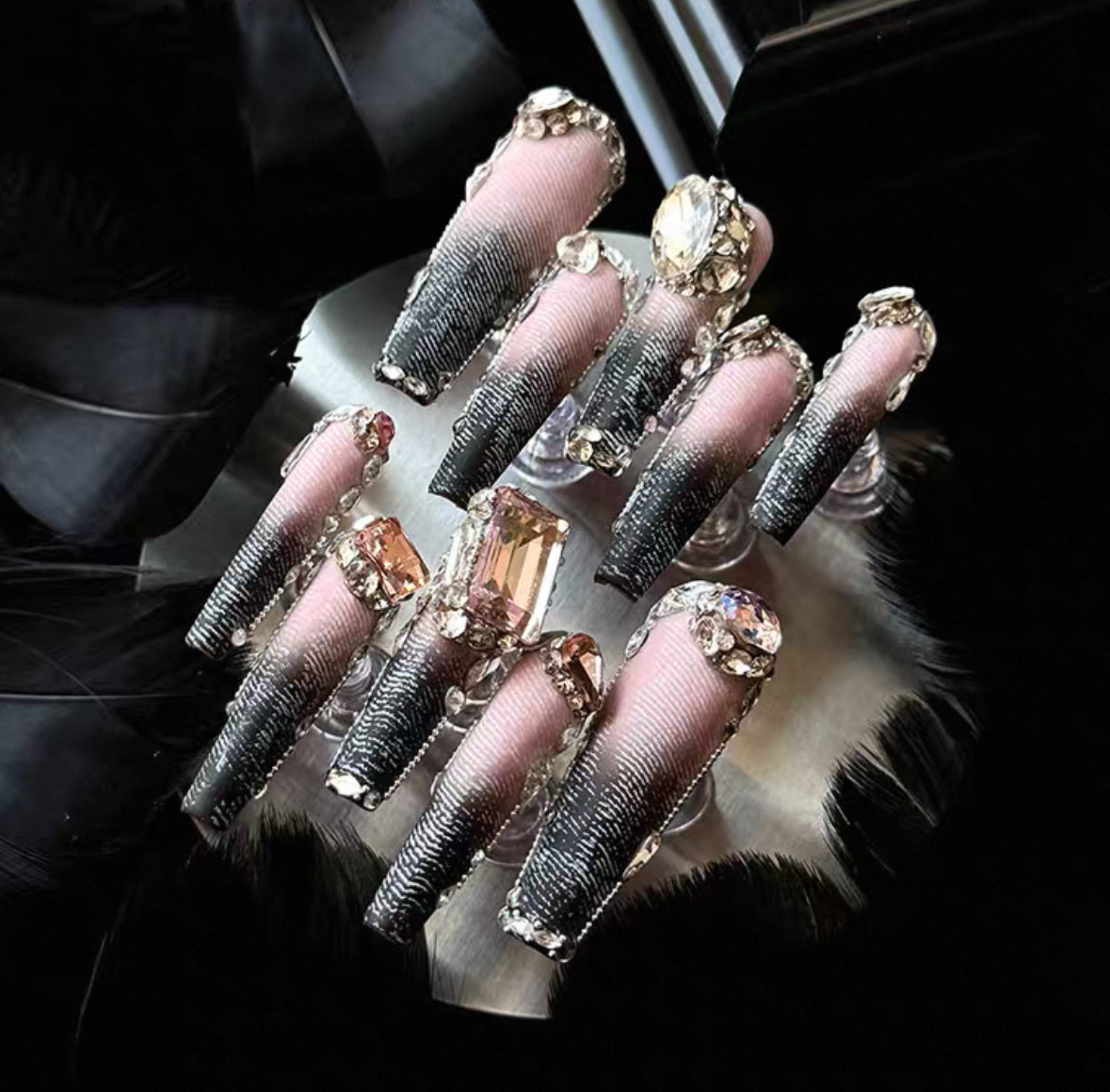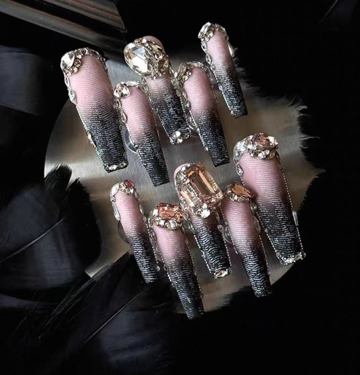 Charme Atelier - Gradient Pink & Black - Customizable Handcrafted Press On Nails