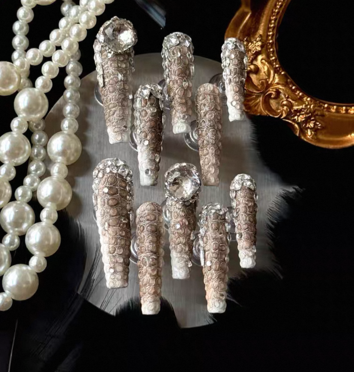 Charme Atelier - Metallic Brown & Silver - Customizable Handcrafted Press On Nails