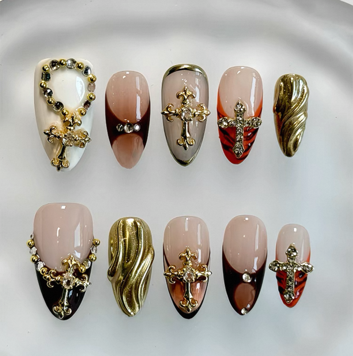 Everyday Cute - Nude and Red Elegance - Customizable Handcrafted Press On Nails